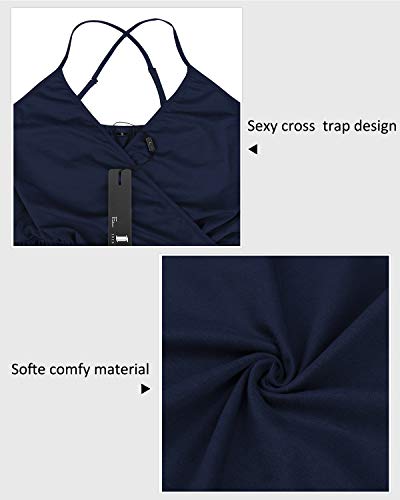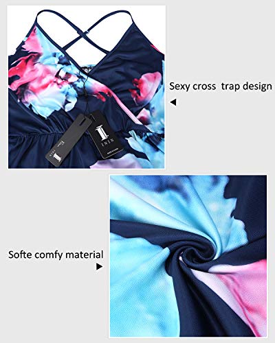 II ININ Women's Deep V-Neck Casual Dress Summer Backless Floral Print Split Maxi Dress for Beach Party(Navy,L)