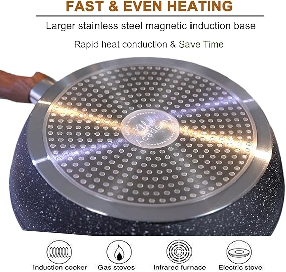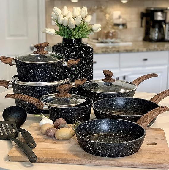 This Kitchen Academy pots and pans set features a non-stick coating for easy cooking and cleaning. The durable construction ensures long-lasting use and even heat distribution for optimal cooking results. Perfect for any home cook looking to elevate their kitchen experience with high-quality cookware.