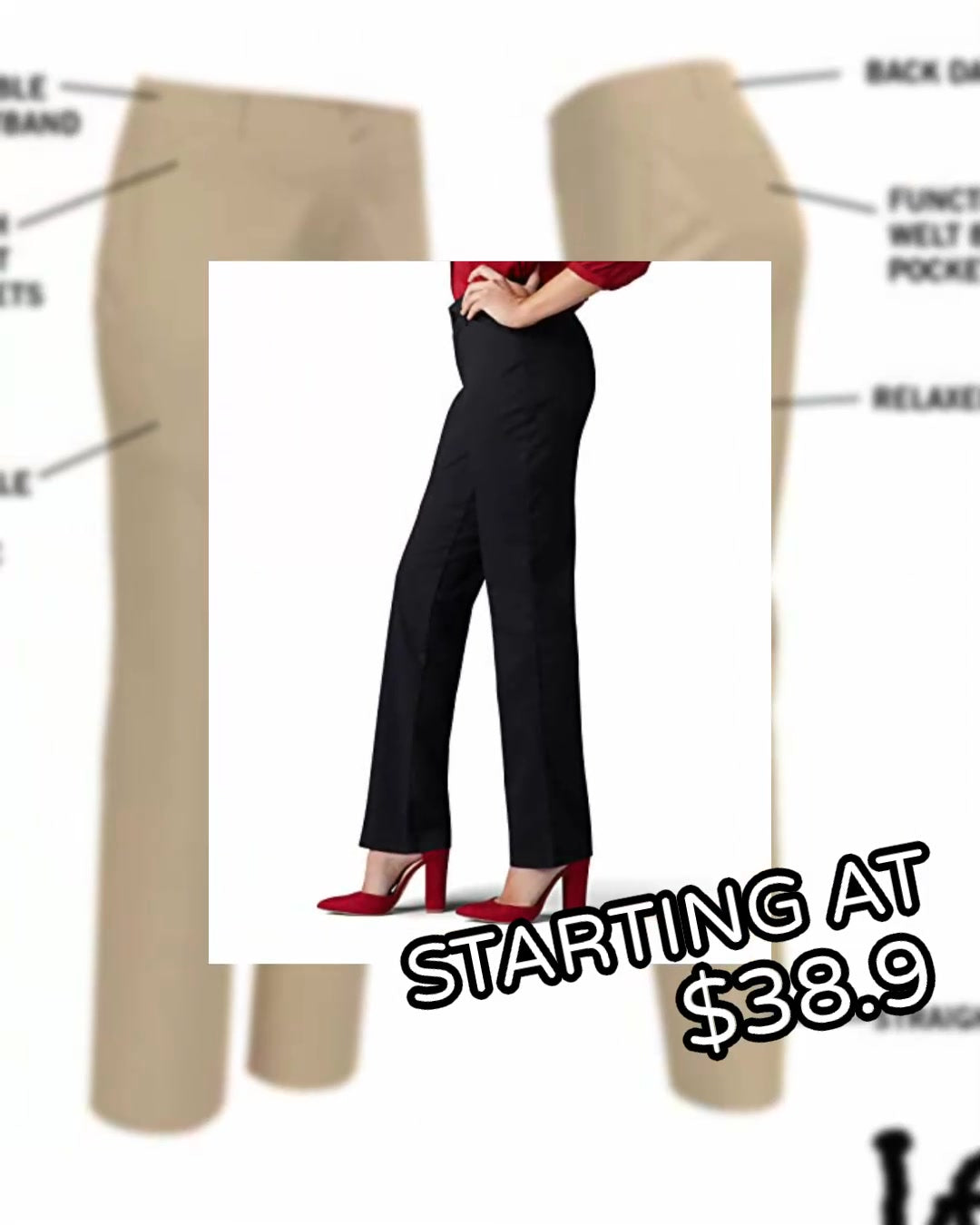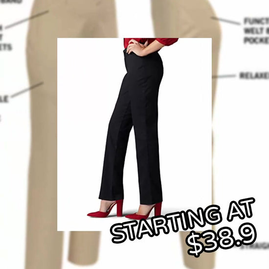 RELAXED FIT. With a relaxed fit and mid rise, these pants are a wardrobe necessity. These women's slacks help keep you looking wrinkle-free for carefree wear from work to dinner. - WRINKLE-FREE. Made with wrinkle-free fabric, these women's dress pants are low maintenance and worry-free with a polished look. A flexible waistband and stretch fabric offers comfortable stretch.