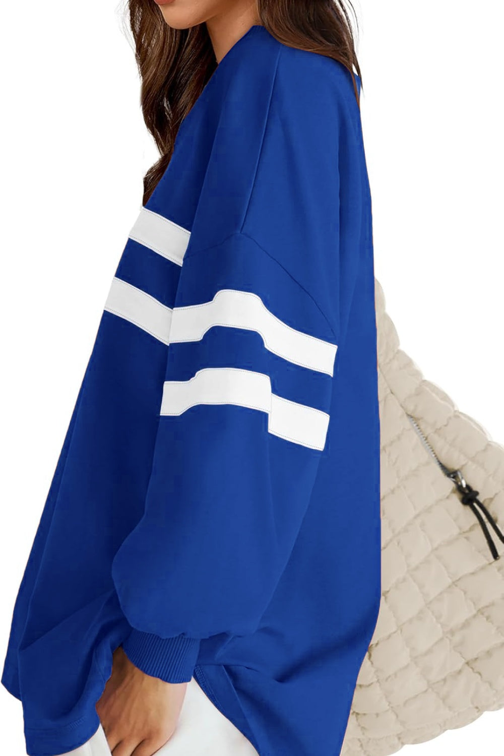 Lovelet Striped Round Neck Dropped Shoulder Sweatshirt