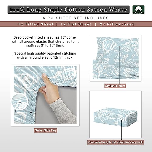 Pizuna 400 Thread Count Cotton Full-Size-Bed-Sheets-Set,