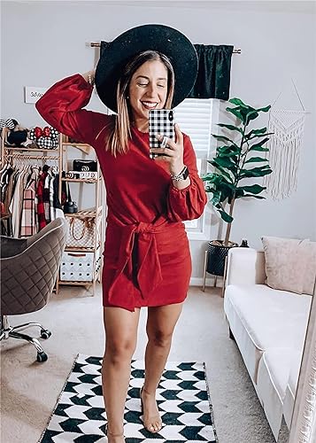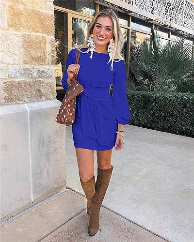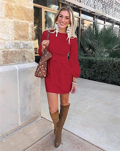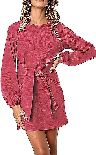 Fall Dresses for Women 2023. Soft and stretchy fabric provides all day comfort.Machine washable,hand wash recommended.Size Guide:XS=US 0-2,S=US 4-6,M=US 8-10,L=US 12-14,XL=US 16-18,XXL=US 20-22 - Features: Womens Fall Fashion 2023,Above knee length,Lantern Long Sleeve,Round Neck,Belted,Lightweight,Breathable,Solid Color,Casual Style,Office,Wear to Work