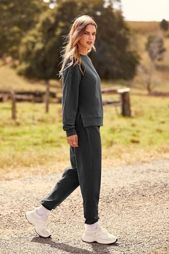PRETTYGARDEN Women's Tie Dye Two Piece Tracksuit Set Long Sleeve Sweatshirt with Long Pants (Grey,X-Large)