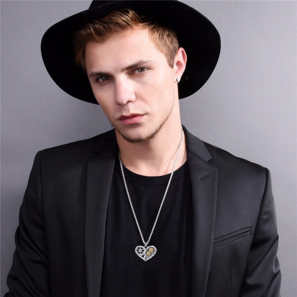 Quality Black Stainless Steel Mechanical Gear Heart Pendant Necklaces