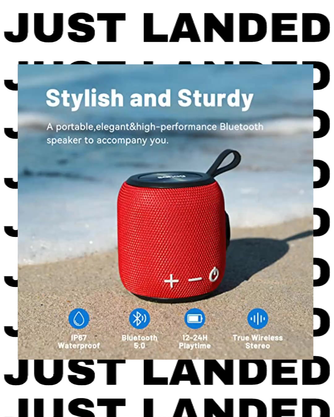 - 🛡️【IP67 Waterproof 】: Fully wrapped design with IP67 waterproof makes it not afraid of rain.Playing music at ease.You are never alone to sing in the shower with the bluetooth speaker.It is also anti-shock and anti-damage.Even if the bluetooth speaker falls down at 1.5m high,it can still keep intact.It can even be used in harsh environments such as lakes,forests and deserts.