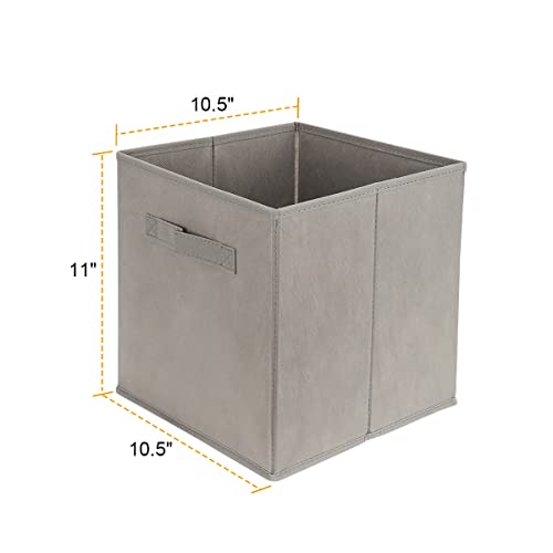 Natural grey color perfectly blends in your home décor or office. Works great on the shelves, under coffee tables, and in dorm rooms! Easy to fold down when not in use - 4 Pack. Dimensions (each): 10.5x 10.5 x 11 inch, Compatible with KALLAX / Expedit shelf unit series. Better Home and Garden (BHG) shelf Unit 13 inch Cubbies