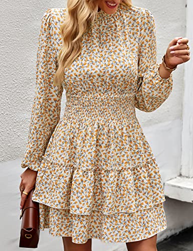 Material:Chic Long Sleeve Floral Dress Is Made Of 100% Polyester Fabric, Lightweight, Soft, Breezy And Breathable,Make You To Get Maximum Comfort. Casual Dress For Women, Loose Version, Covering The Fats And Looking Thin, Full Of Lively And Casual Feeling. - Features:Womens Casual Dress / Long Sleeve Mini Dress / Swiss Dot / Loose Fit / Solid Color / High Waist / Lined / Cocktail Dress / Plus Size Dress / Maternity Dress / Ruffle Dress / Short Dress / Cute Babydoll Dress / Boho Floral Dress / Wedding Guest Dress / Above Knee Length / Ruffle Sleeve&Neck / Crew Neck/ Pleates On Chest / Ruffle Tiered Dress / Long Sleeves With Elastic Cuff / Casual / Pleated / Comfy / Fashion / Elegant / Trendy