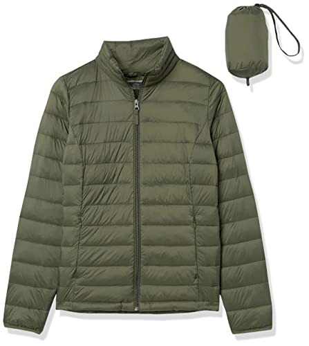 Product Description An Amazon brand - Contoured seams bring a fitted shape to this water-resistant quilted jacket featuring down fill for warmth and compressibility . Amazon Essentials is focused on creating affordable, high-quality, and long-lasting everyday clothing you can rely on. Our line of women's apparel includes cashmere sweaters, fleece and down jackets, and more, including plus-size options. Our consistent sizing takes the guesswork out of shopping, and each piece is put to the test to maintain the highest standards in quality and comfort.
