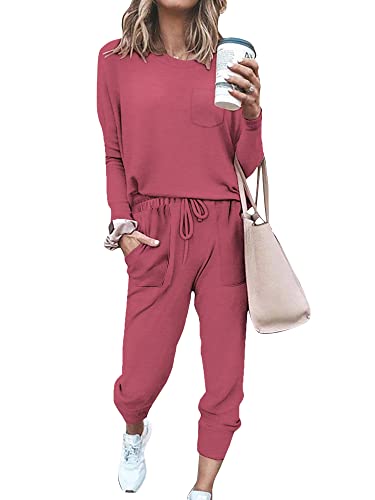 - ✦More Collocation: This Lounge Set Includes A Comfortable Crewneck Long Sleeve Sweatshirt Tops And A High Waist Long Pants With Drawstring. You can choose to wear the whole set together, or wear it separately with other tops or bottoms. They are all solid-color basic designs, classic and all-match which can match any clothes in your wardrobe. You can also add a jacket/ Coat/ Cardigan to keep you warm in cool days. A perfect gift for Christmas!