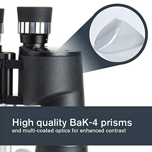 20xmagnification porro prism binocular. Giant 80 mm objective lens offers maximum image brightness in low-light and long-range conditions. Suitable for terrestrial or astronomical viewing. The close focus is 33 meters (108 ft) - Ultra sharp focus across the field of view and multi-coated optics for sharp, clear views. Suitable for terrestrial or astronomical viewing