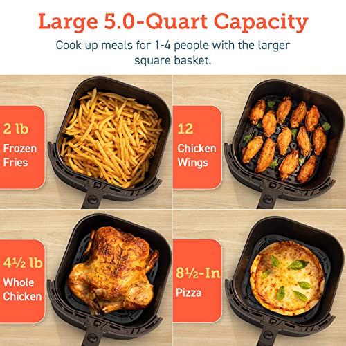 - Compact but suitable capacity : it can hold 5-quarts of cooking space, which fits enough food for 2-4 people, with compact design takes up little room on your counter top