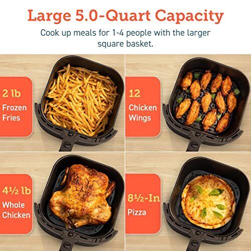 - Compact but suitable capacity : it can hold 5-quarts of cooking space, which fits enough food for 2-4 people, with compact design takes up little room on your counter top