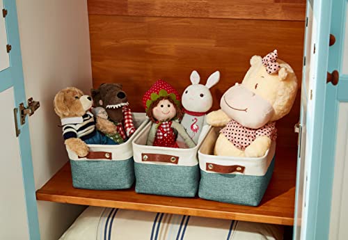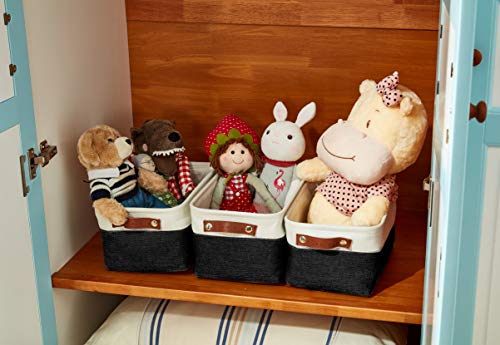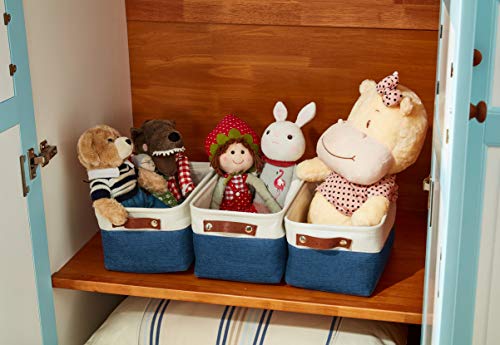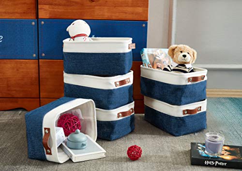 - ✅ RUGGED AND DURABLE: Unlike others, our baskets are supported with MDF fiberboard bottom to provide rigidity for daily use and ensure a greater product lifespan. Made with attractive, decorative and durable extra thick EVA fabric exterior paired with polyester interior lining. Reinforced by an upper metal supporting frame for maintaining a greater structural integrity. Sturdy faux leather handles that adds a classic touch and provides a strong and comfort grip to pull and carry around.