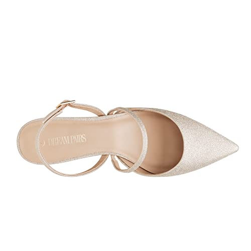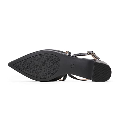 DREAM PAIRS Women's Pumps Chunky Closed Toe Low Block Heels Strappy Buckle Pointed Toe Slingback Dress Wedding Party Shoes