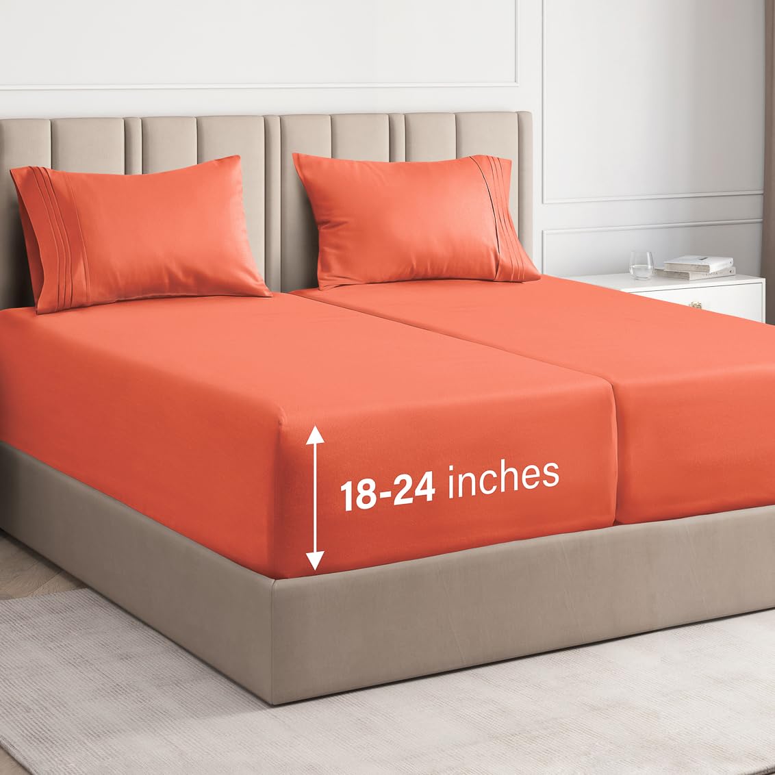 MICROFIBER: These are the softest type of microfiber bed sheets we have created. Super soft with a light feel. Not crisp like cotton. If you're accustomed to cotton sheets and you've never tried microfiber sheets we recommend you at least give these a try. They're even softer than Cotton! - EXTRA DEEP POCKET FULL SHEETS / EXTRA DEEP FITTED FULL SHEETS: These bed sheets are for very deep pocket mattresses. They fit any mattress with pockets that are 18, 20, 21, 22 and 24 inches deep mattresses. There's a stretchable elastic around the extra deep fitted sheet which stretches for a nice tug around your mattress. Perfect for extra tall & large mattresses. Rest assured these oversized sheets will stay on tight & stay in place!