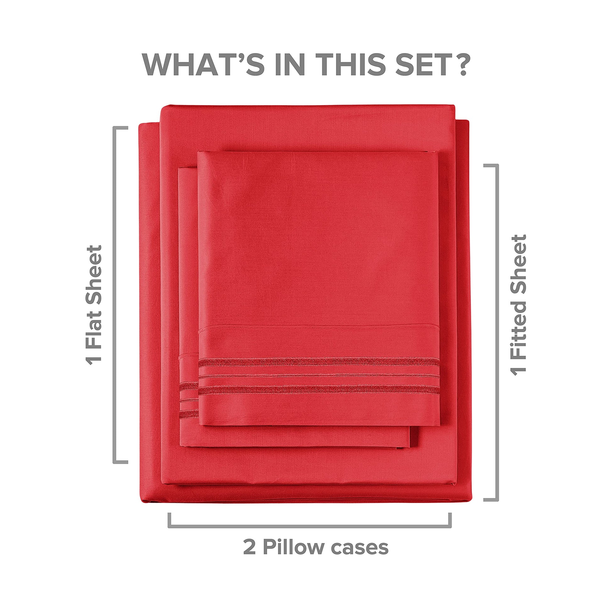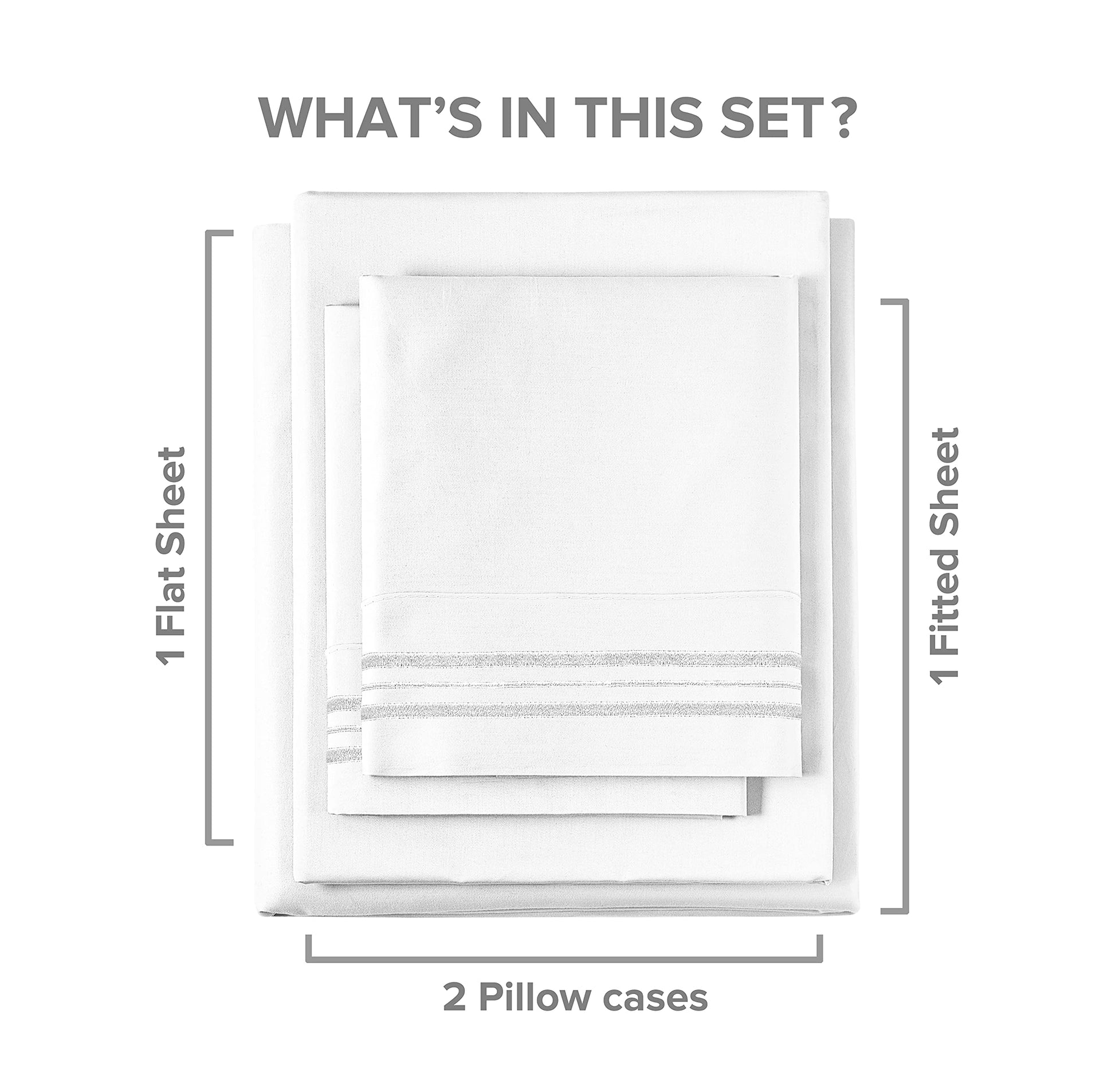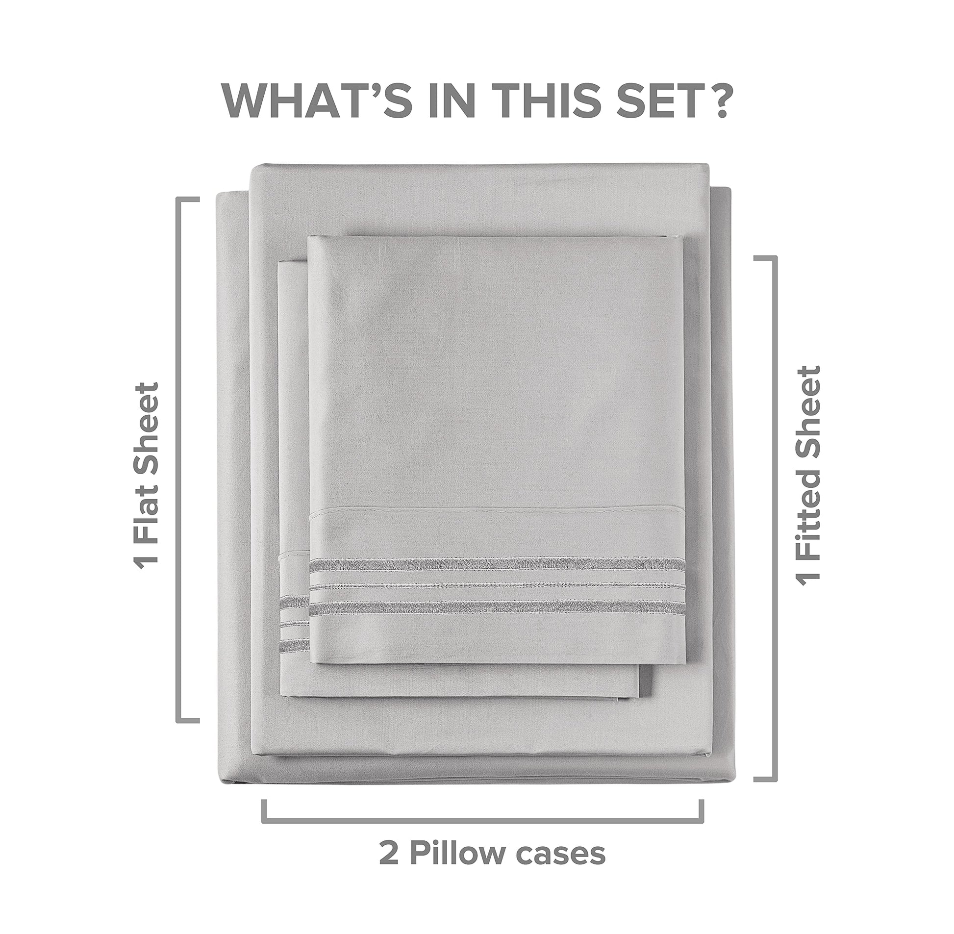- 4 PIECE SHEET SET: This bed sheet set comes with 2 pillowcases total all with beautiful decorative embroidery design on each pillow case. The pillow cases have enclosure designs. This bedding set will accommodate your extra thick mattress perfectly.