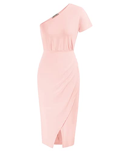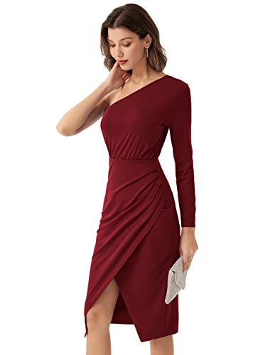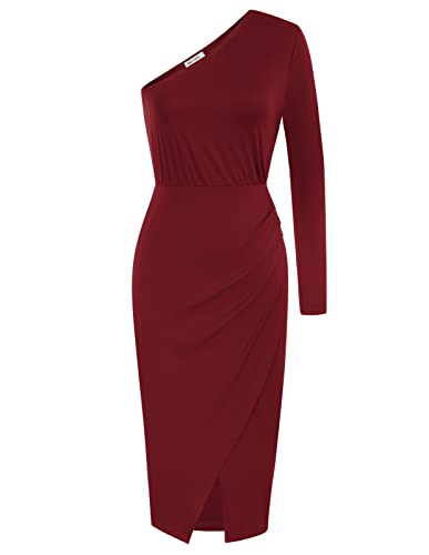 【Eye-catching design]】The chic and elegant one-shoulder design can show your sexy neck and shoulders.The pleated design makes this fitted pencil dress more stylish and not monotonous. This asymmetrical wrap dress is both classic and sexy, looming your beautiful legs. - 【Slit Design]】The front cross slit accentuates your perfect curves. Classic but never out of fashion. A perfect dress that your closet can't live without.