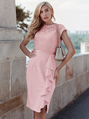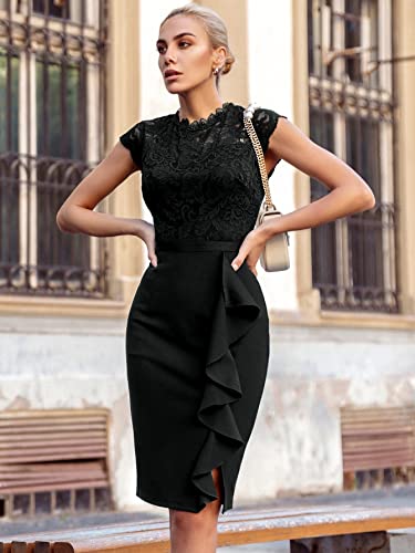 Miusol Women's Retro Floral Lace Ruffle Style Cocktail Mini Dress