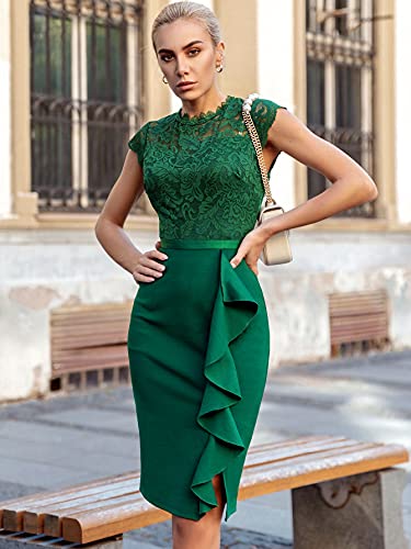 The Miusol Women’s Retro Floral Lace Ruffle Style Cocktail Mini Dress adds elegance and sophistication to any event. This vintage-inspired mini dress is designed with delicate floral lace, intricate ruffle details and a flattering fit that make it a must-have for your wardrobe. Perfect for cocktail parties, special occasions, and more.