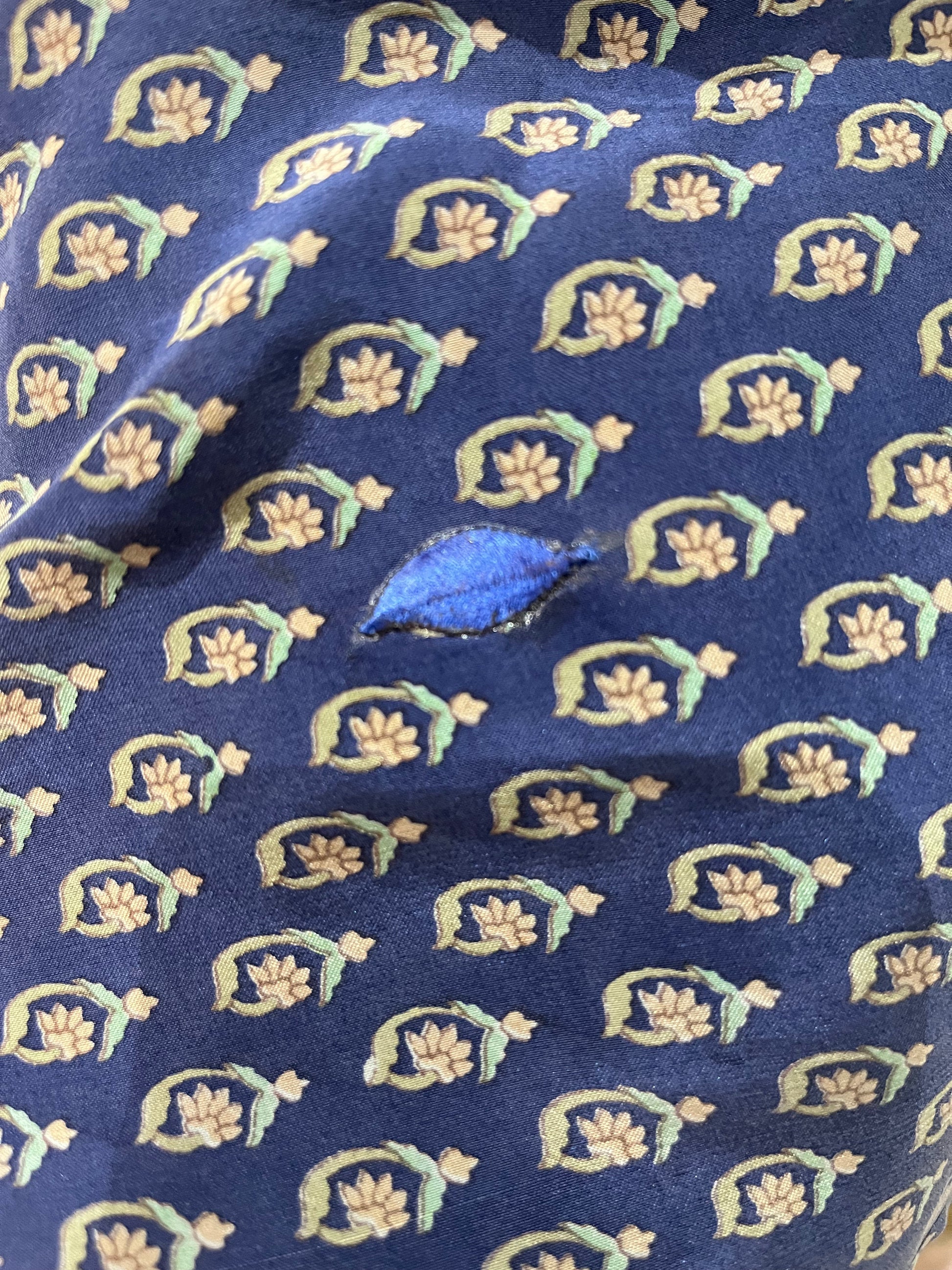 If you look very closely, you will see that the silks in this collection show some of the character of their previous incarnations through the appliqués that have been lovingly applied to bring new life to the fabric. This piece is a reminder that we are part of a collective journey to which we all add a little something.