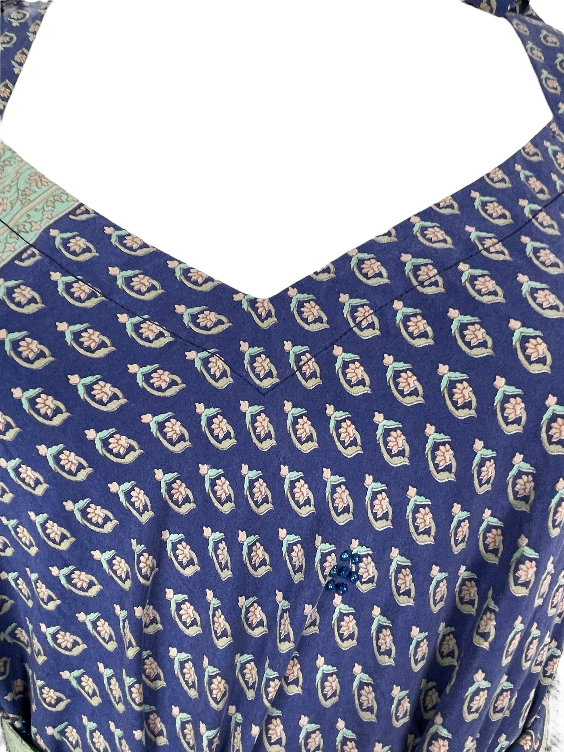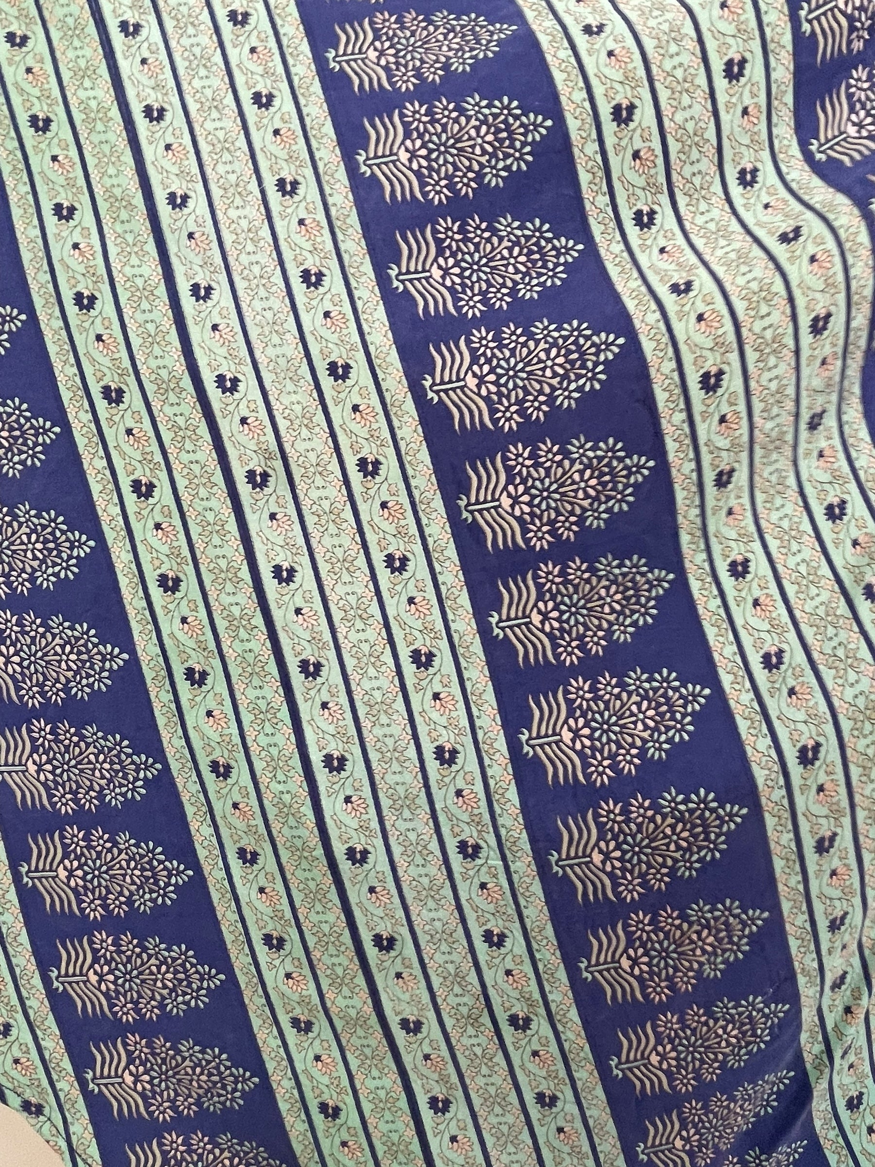 In Eastern philosophy, an Avatar is an incarnation that teaches how to evolve virtues of the past into the present. The Pure Upcycled Silk Avatar Collection is made from vintage pure silk saris, chosen and worn by women in the past to celebrate their lives.If you look very closely, you will see that the silks in this collection show some of the character of their previous incarnations through the appliqués that have been lovingly applied to bring new life to the fabric. This piece is a reminder that we are part of a collective journey to which we all add a little something.