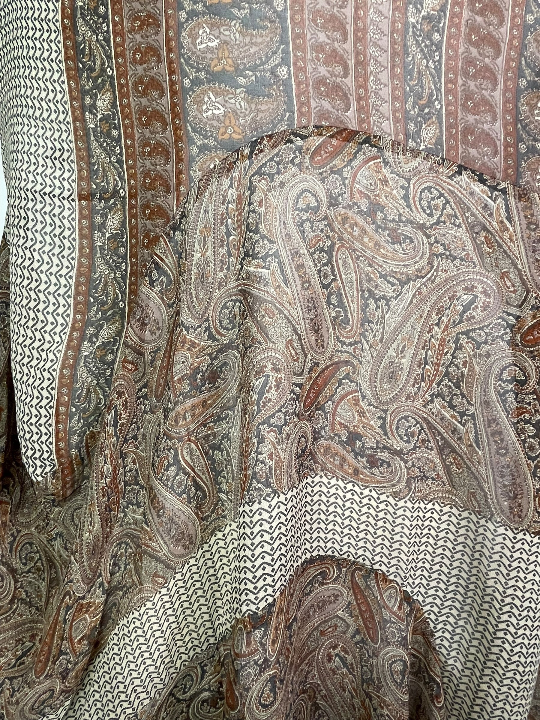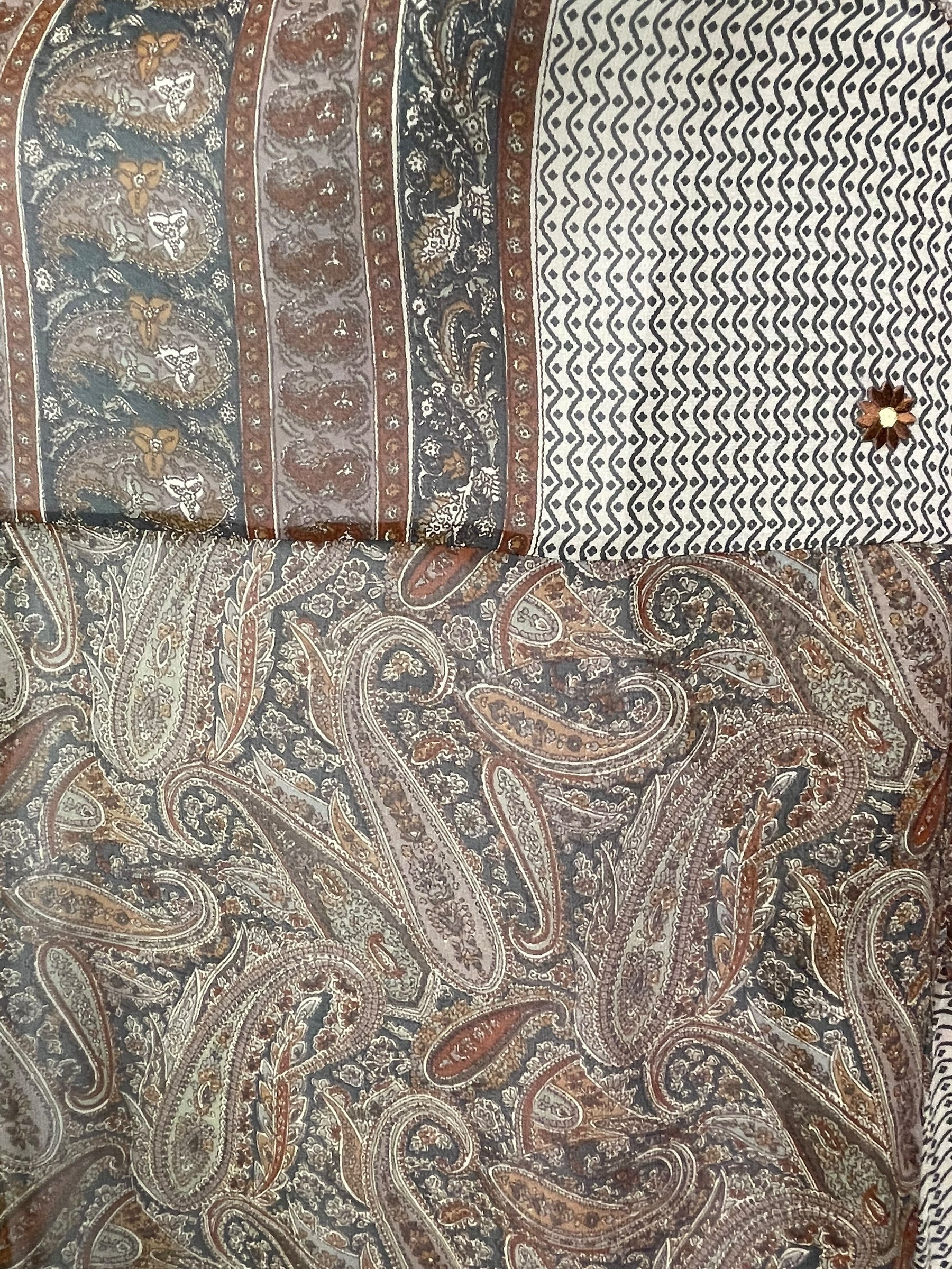 In Eastern philosophy, an Avatar is an incarnation that teaches how to evolve virtues of the past into the present. The Pure Upcycled Silk Avatar Collection is made from vintage pure silk saris, chosen and worn by women in the past to celebrate their lives.If you look very closely, you will see that the silks in this collection show some of the character of their previous incarnations through the appliqués that have been lovingly applied to bring new life to the fabric. This piece is a reminder that we are part of a collective journey to which we all add a little something.