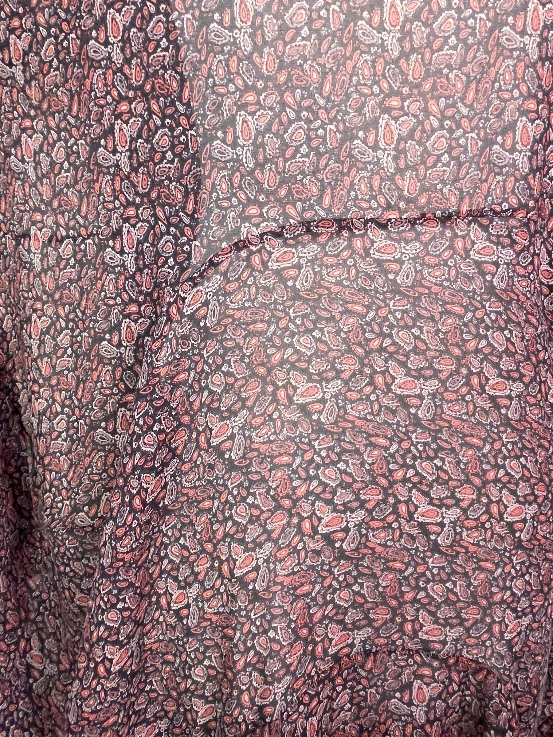 If you look very closely, you will see that the silks in this collection show some of the character of their previous incarnations through the appliqués that have been lovingly applied to bring new life to the fabric. This piece is a reminder that we are part of a collective journey to which we all add a little something.