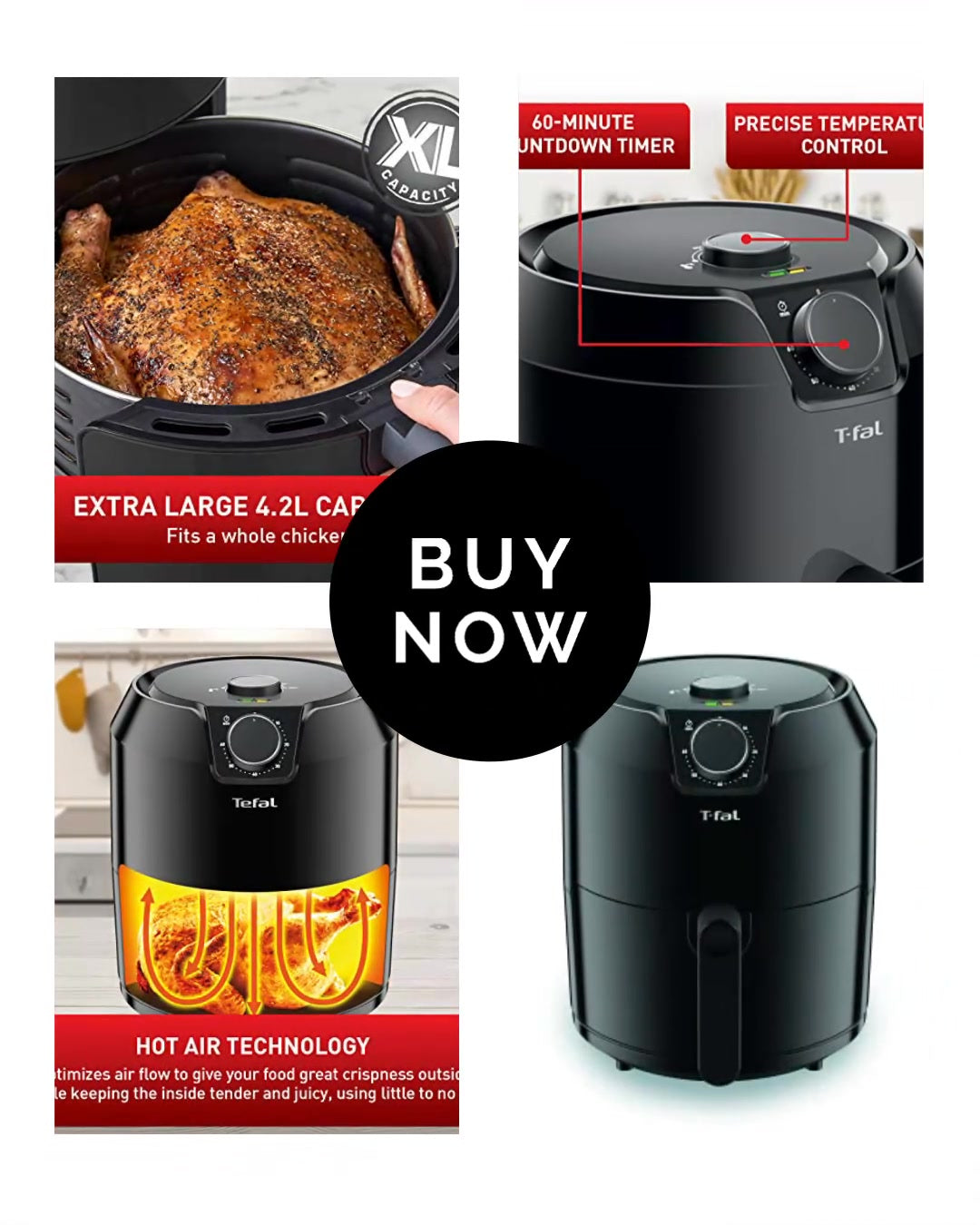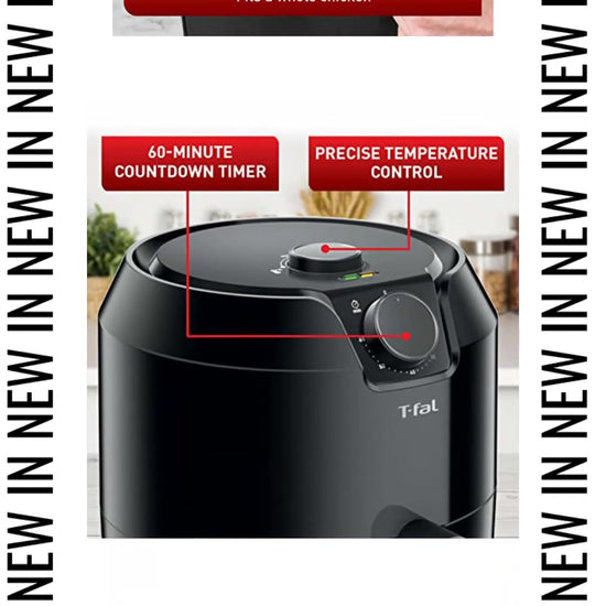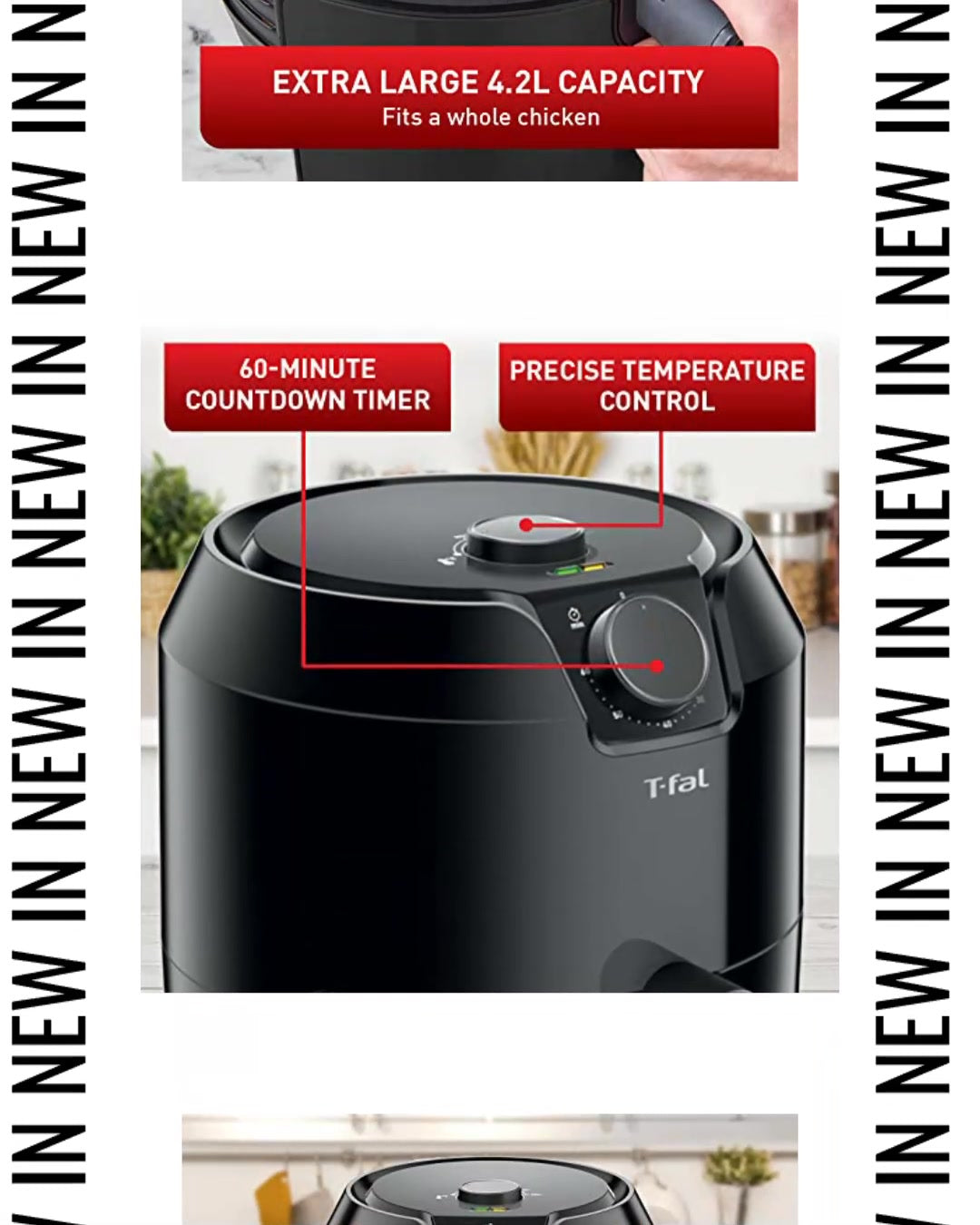 T-Fal Air Fryer, Friteuse, Easy Fry, Low Oil, Patented Basket System, 4.4Qt / 4.2L, EY201850, Black