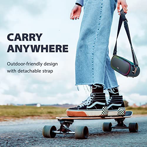 - Portable Speaker for Outdoors: Bring it to the beach, the park and more using the tough removeale classic black shoulder strap with an anti-slip design for easier carrying. Durable exterior design with rugged shoulder straps, this waterproof speakers accompany you on any adventures.