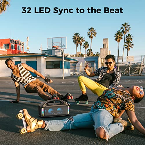 - 32 Led Lights Sync to the Beats: The Tribit StormBox Blast is more than a portable speaker, it's a show; Clap your hands and move your body to every beat of your music with this loud stereo speaker.