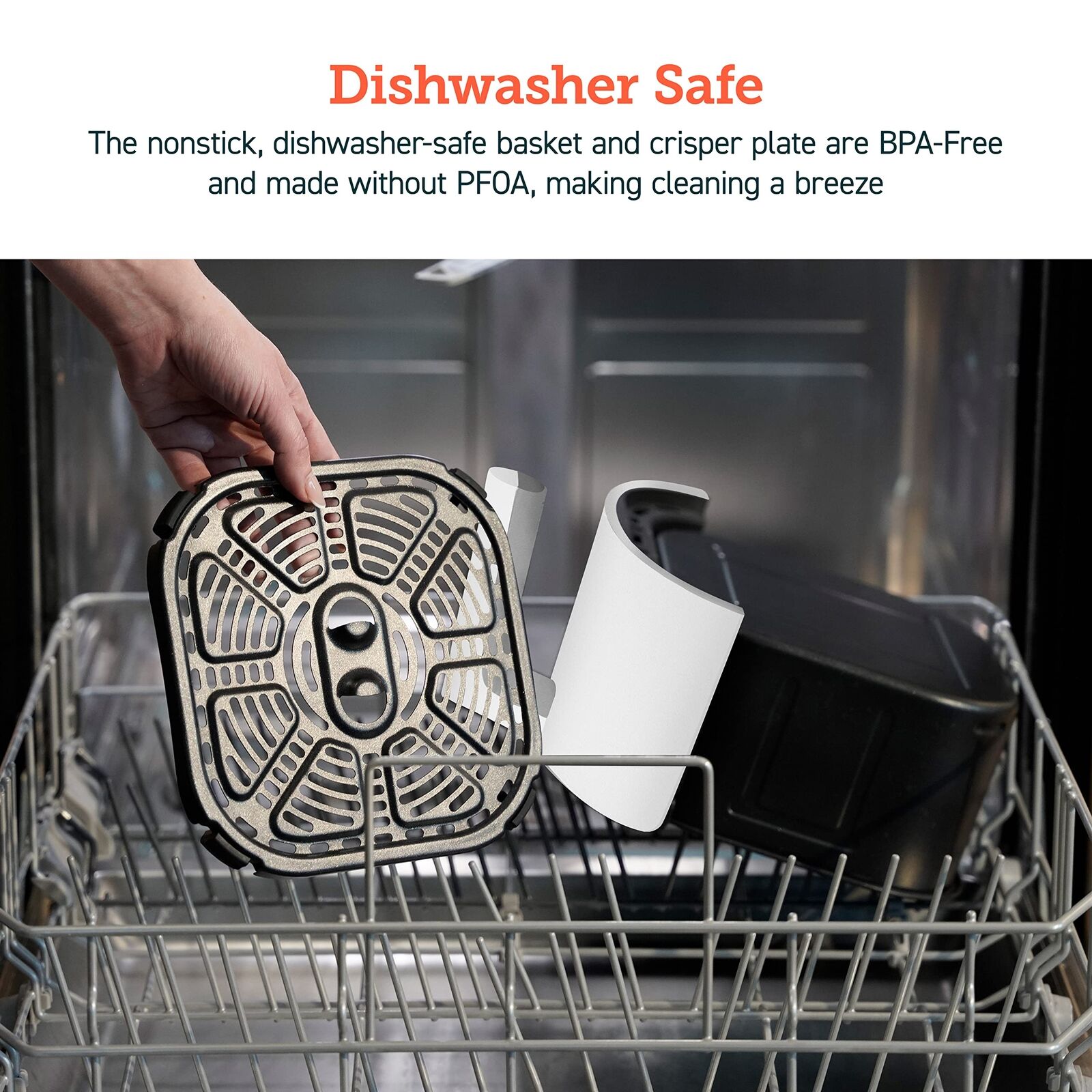 - DISHWASHER SAFE: With a nonstick basket, made without BPA and PFOA, easy to clean