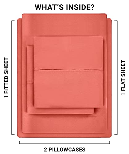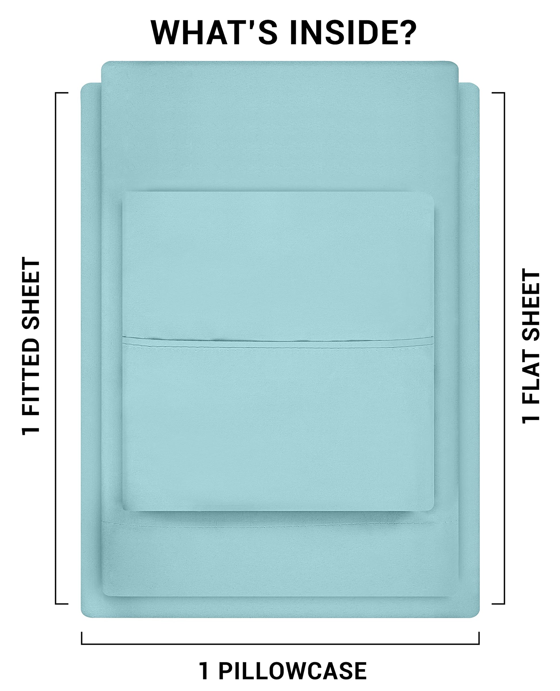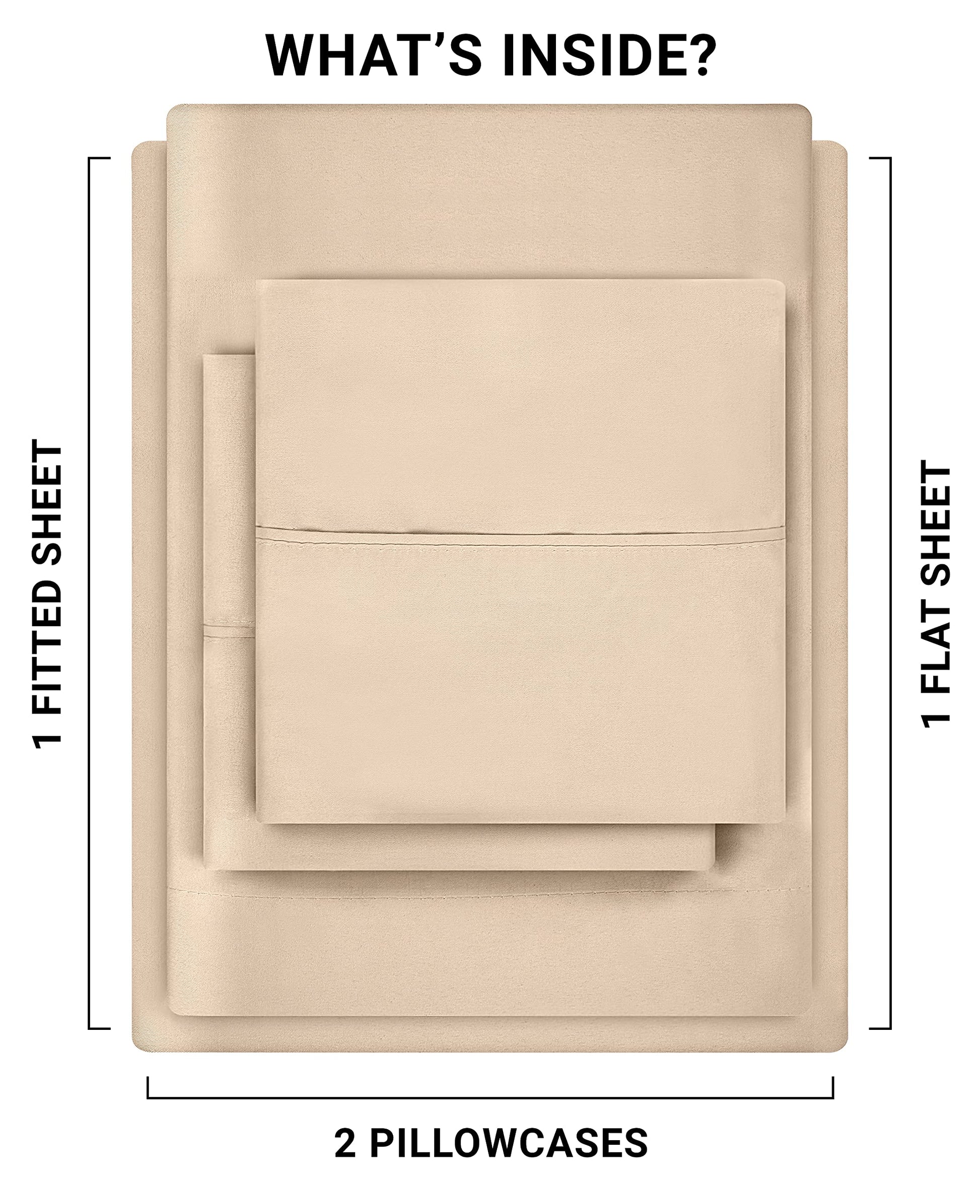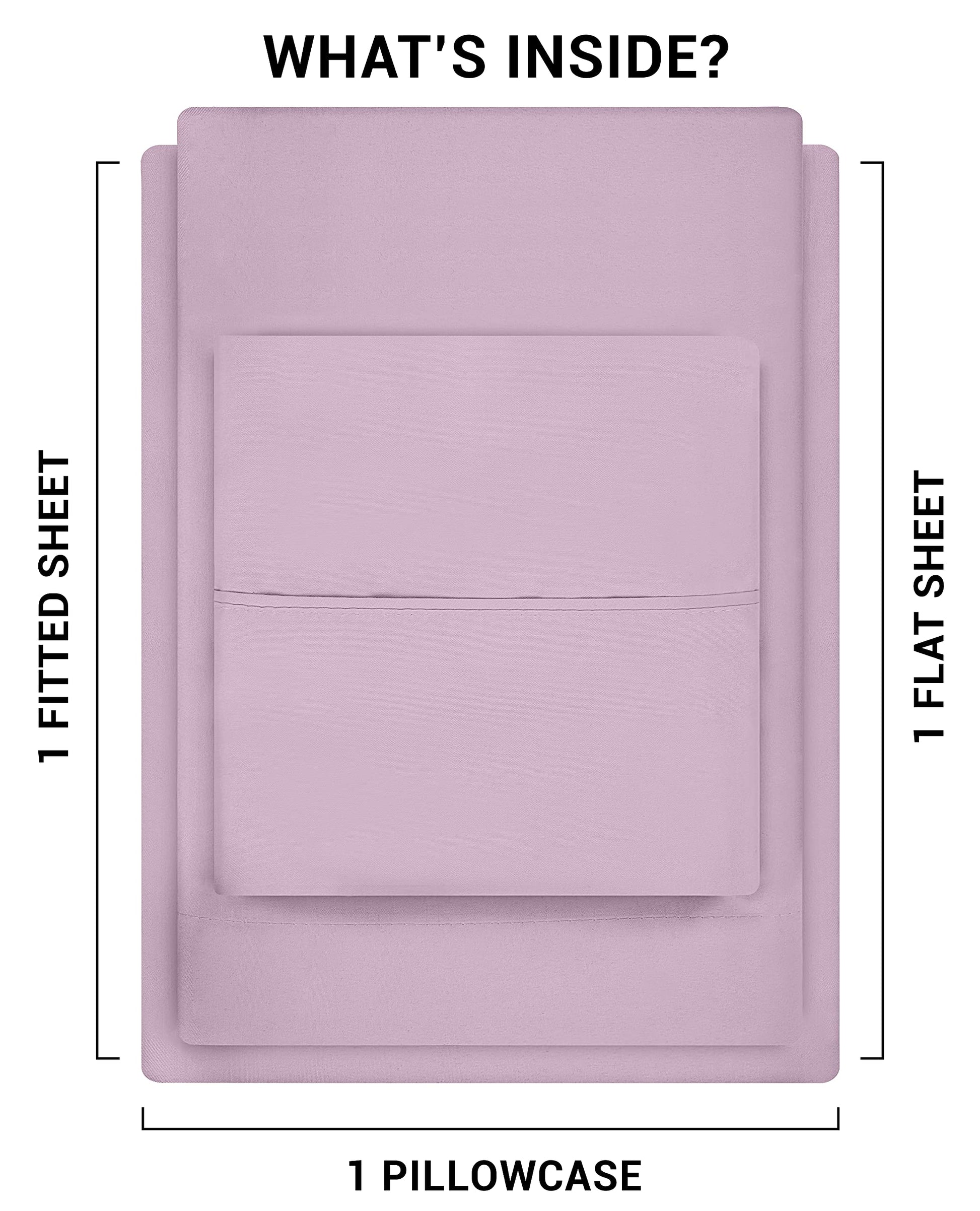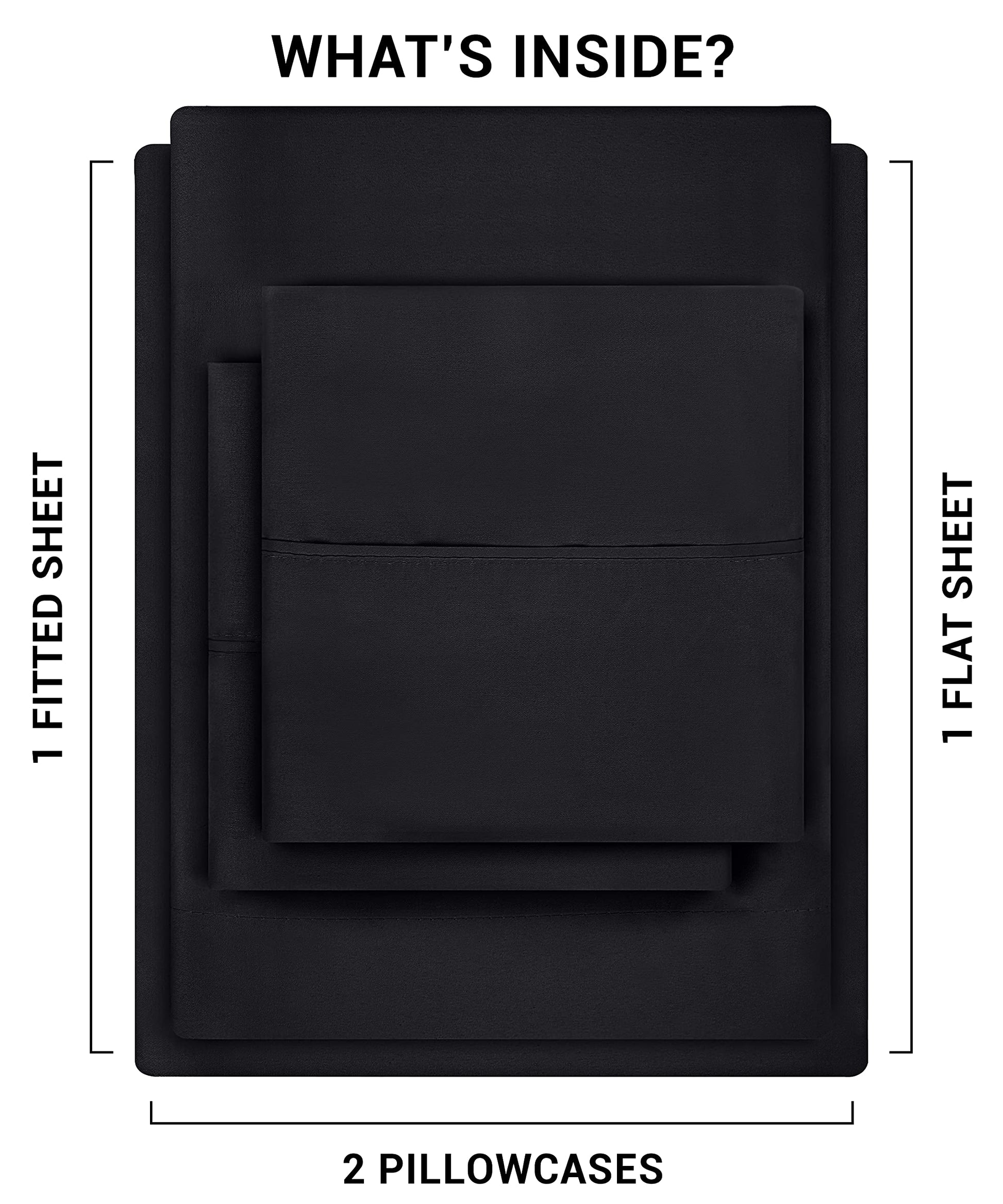 BED SHEET SET - Full size 4-piece bed sheet set comprising of 1 flat sheet measuring 81 by 96 inches with a 2 inches self-hem, 1 fitted sheet measuring 54 by 75 inches with a 15 inches box for over-sized bedding and 2 pillowcases measuring 20 by 30 inches each with a 4 inches hem - ALL-AROUND ELASTIC - The all-around elastic used in the fitted sheet makes it fit easily onto the mattress while giving a nice finish to the bed