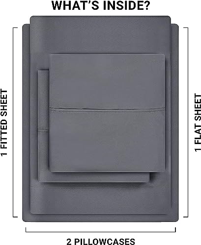 This Utopia Bedding Bed Sheet Set includes everything necessary for a great sleep experience. Its 4 piece set includes a flat sheet, fitted sheet and 2 pillowcases. The 100% microfiber material is soft and breathable, guaranteeing maximum comfort and warmth all night.