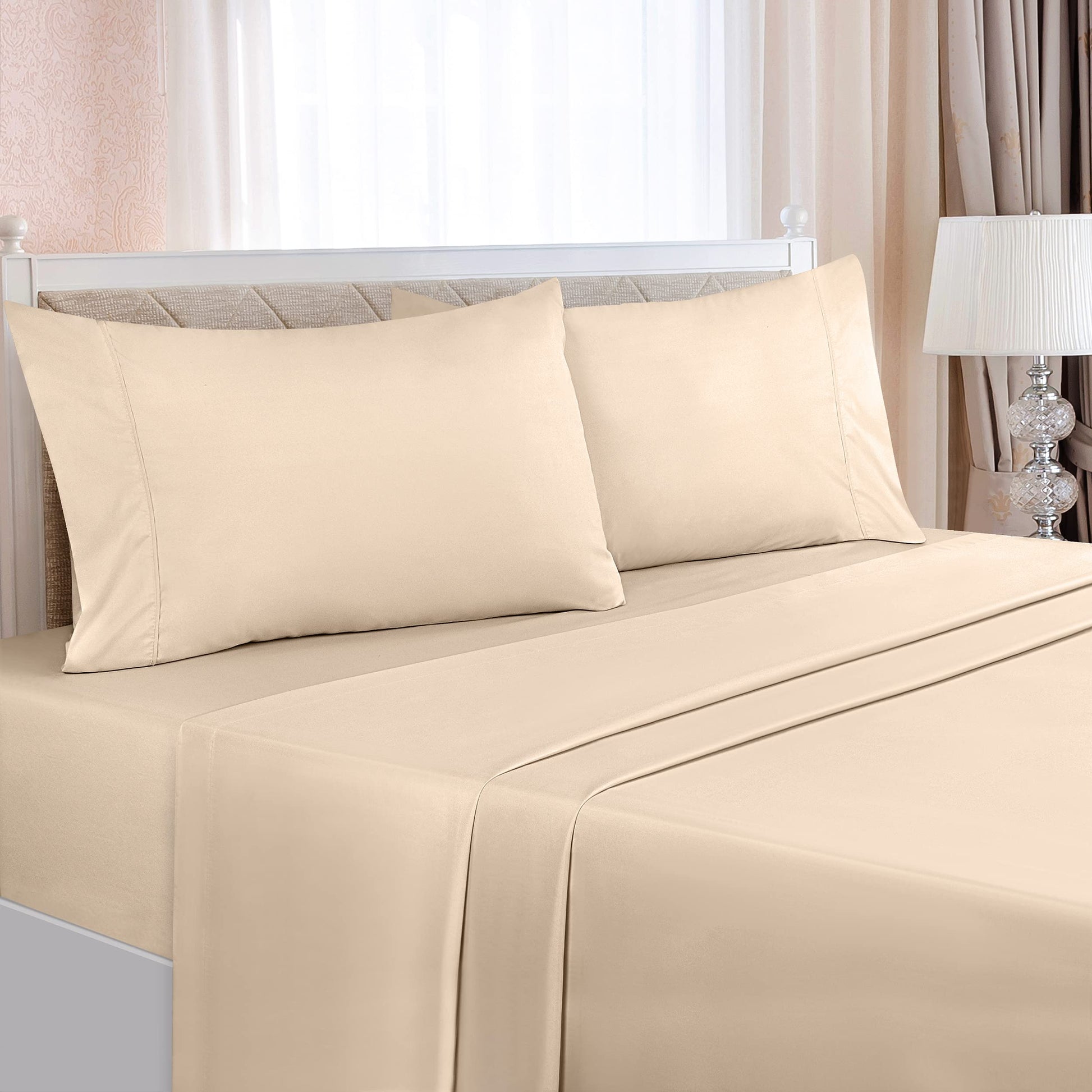 Luxury 4-Piece Sheet Set! Wrap up yourself in these carefully crafted 100% polyester brushed microfiber 4-piece sheet set that is expertly manufactured for durability. The cozy and environment friendly sheets are designed for both institutional and home use. These sheets are made from brushed microfiber for a soft feel and comfort. The material is fade-resistant. There is no shrinkage and fabric is strong, durable and maintains brightness & shape. It uses less quantity of water for laundering, less percentage of chemicals and consumes less energy for drying. The sheet set can be washed and dried through an ordinary washer and dryer which will not affect them. They also dry very fast because of their thin fabric. They can also be hand washed.