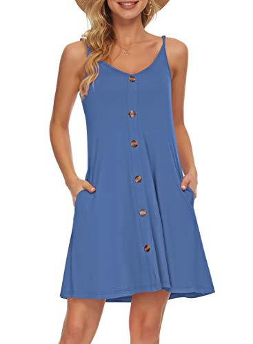 - ❤ 【Match and occaasion】:This sundress is such an effortlessly beautiful style for summer!This dress a classic v-neckline and retro button details for a must-have look, plus it's so easy to layer this with a beautiful jean jacket for a chic layered look!It also features breezy swing style,You can easily pack this for a beach vacation or wear it for a backyard cookout! We love wearing this dress with sandals, belt,a floppy hat, and sunnies for an effortlessly tropical style!